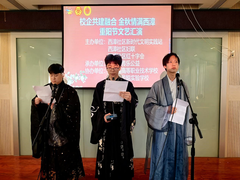金秋十月,丹桂飘香。为丰富社区群众的精神文化生活,营造尊老、爱老、助老的良好氛围,扎实开展好学生社区实践活动。10月9日下午,机电工程学院联合西漳社区开展“情系重阳,久久相伴”文艺汇演活动。