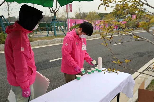 不到七点,交校的青年志愿者们已经到达指定地点,在赛事专员的指导下,完成饮料桌、食品桌、海绵桌上物品的摆放,做好前期的准备工作。在开云手机客户端,他们是努力认真的学习者,在樱花赛道,他们是最美的服务者。