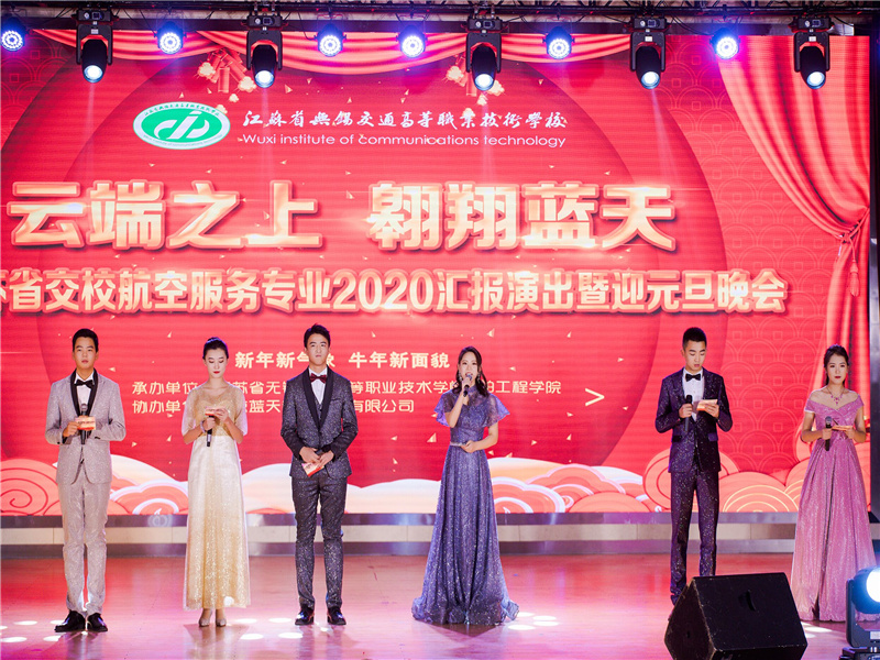 12月9日晚,船舶工程学院在校大礼堂举办了“蓝天杯”航空服务专业2020汇报演出暨迎元旦晚会,欢送我校首届航空服务专业毕业生。开云手机客户端党委书记、校长李虎,副校长倪依纯,船舶工程学院院长,船舶工程学院党总支副书记,开云手机客户端各处室、院部的领导,教师代表、学生代表以及航空服务专业的家长代表出席了本次活动。泰州职业技术学院党委副书记钟文乐、经济管理学院党总支书记展凯,南京蓝天教育集团董事长朱正华,副总经理安宏林及南京金陵高职校工作站主任刘恋应邀出席了本次活动。