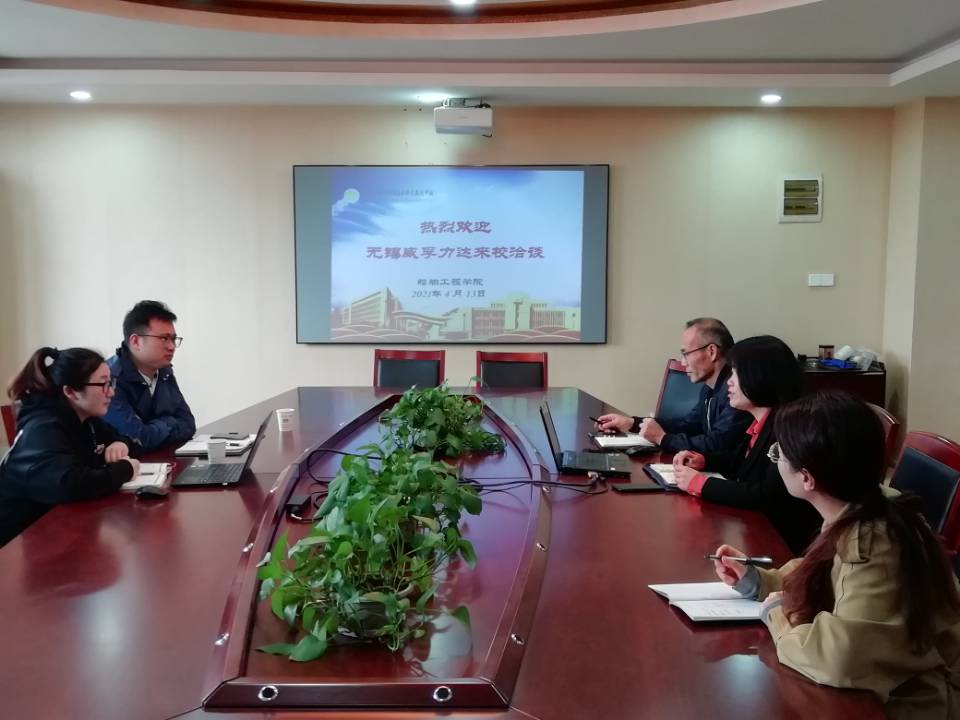 为深化产教融合、校企合作,4月13日,无锡威孚力达催化净化器有限责任公司人事行政经理夏冬辉、人事行政科长徐成亚一行来校洽谈校企合作。船舶工程学院院长吴志亚、党总支副书记赵斌参加了此次洽谈。
