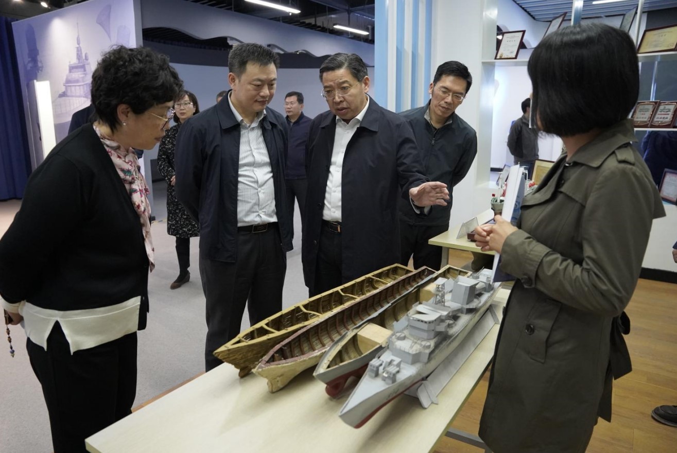 方胜昔副主席一行实地考察了我校船文化中心、物联网技术实训基地,详细了解我校青少年科普工作开展情况。他充分肯定了开云手机客户端在科普工作方面取得的成绩,提出了“三色文化”育人,即红色文化、蓝色海洋文化、特色船文化,并对下一步工作提出了要求与殷切期盼,他指出我校应进一步规范科普基地管理、培养科普工作团队、完善相关文字介绍。