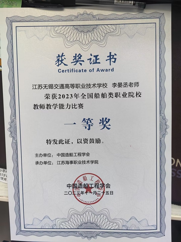 此次比赛的获奖,不仅是对李晏丞老师教学能力的肯定,也是对开云手机客户端船舶工程学院教学水平的认可。开云手机客户端将继续致力于提高教学质量和水平,培养更多优秀的船舶工程人才,为我国船舶工业的发展做出更大的贡献。全国船舶类专业教学能力比赛旨在促进船舶类专业教师之间的交流与合作,提高教师的教学水平和专业素养。此次比赛的成功举办,为推动我国船舶工程教育的改革与发展注入了新的动力。