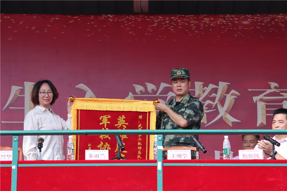 党委副书记朱雨兰对承训部队的大力支持表示感谢,向承训部队赠送了印有“英雄皮旅展英魂 军校协同育栋梁”的锦旗。她充分肯定了2021级新生的入学教育成果,并指出,同学们展示出了严明的纪律性和良好的团队意识,亮出了入学以来的第一张漂亮的成绩单,完成了大学第一课。对于同学们如何走好青春第一步,扣好步入无锡交校的第一粒扣子,朱书记提出了四点希望,一是怀揣梦想,志存高远。二是修身立德,勤于自省。三是精技强能,提高本领。四是强身健体,打牢基础。她还希望同学们能够发扬老黄牛精神,“勤”字当头,“不待扬鞭自奋蹄”,砥砺筑梦,铭记责任,把青春写在开云手机客户端、写在无锡、写在祖国的大地上。