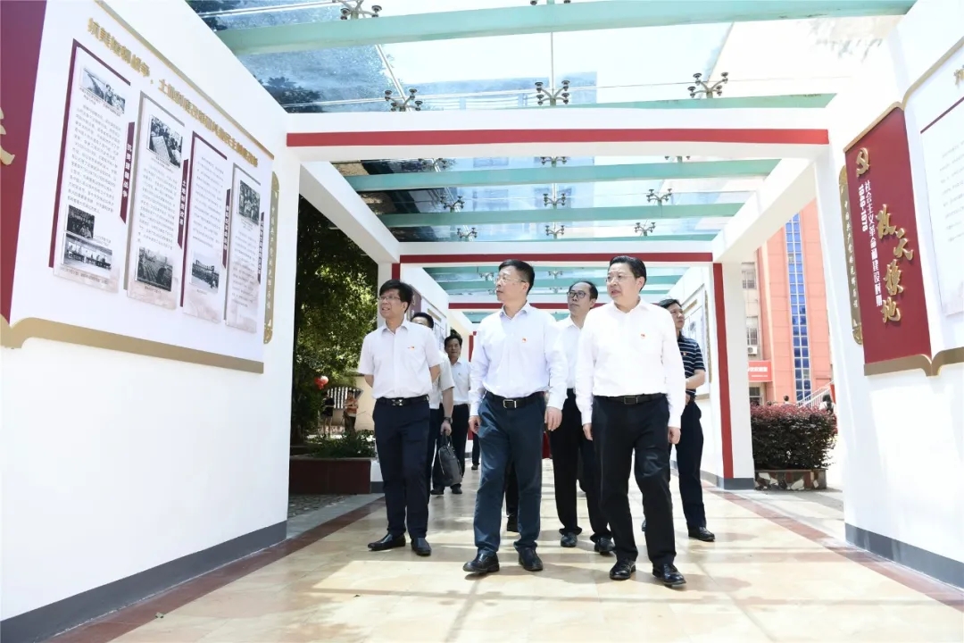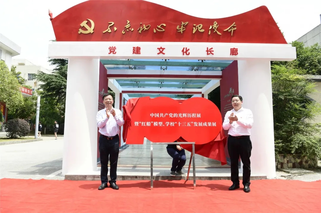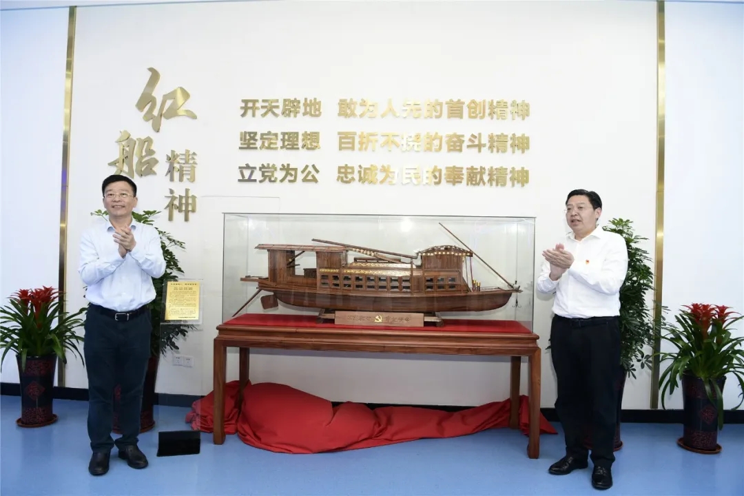 在全体领导和交校师生代表的见证下,金凌副厅长与李虎书记一起为党的光辉历程展、“红船”模型、“十三五”发展成果展揭牌。