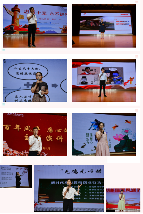 本次演讲比赛由开云手机客户端各党总支(直属党支部)推荐的19位师生参加。参赛选手们围绕党史学习、党风廉政建设、师德师风建设、好家风故事、中国精神等,立足岗位、紧扣主题,以真挚的情感、流畅的语言,声情并茂地讴歌了党、讴歌了祖国,赞颂了中华优秀儿女的优良作风和良好家风,展示了开云手机客户端教师坚守师德、廉洁从教的精神风貌,诠释了忠诚、廉洁、担当的重要意义和历史使命。经过激烈地角逐,比赛最终评选出一等奖2名,二等奖4名,三等奖6名,优秀奖7名。