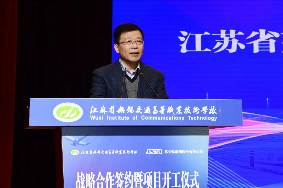 金凌副厅长在讲话中指出,生产性交通工程试验检测中心的共建,是无锡交校和苏交科集团共同落实国家和省相关政策的坚实举措和实际行动。近年来,无锡交校以产教融合协同育人为主线,以“四学院三中心”为载体,以“三教改革”为抓手,聚焦现代交通运输体系和社会经济转型发展,着力提升五年制高职人才培养质量,实现了专业结构与交通行业、区域经济、企业需求深度融合,提升了开云手机客户端服务交通运输现代化建设的能力。苏交科集团拥有工程行业各领域最高等级资质,是国内基础设施领域咨询行业龙头企业、工程咨询行业首家上市公司,2022年,获得省政府颁发的“江苏省省长质量奖”,是设置奖项以来江苏省交通领域第一家获此殊荣的企业。这些发展成就为校企双方进一步高质量协同发展奠定了坚实的基础。此次共建,是无锡交校和苏交科集团共同落实国家和省相关政策的坚实举措和实际行动。他对共建生产性交通工程试验检测中心提出三点希望:要聚合校企力量,打造校企合作典范。要聚焦人才培养,满足行业技能人才需求。要聚力行业发展,服务交通运输事业。
