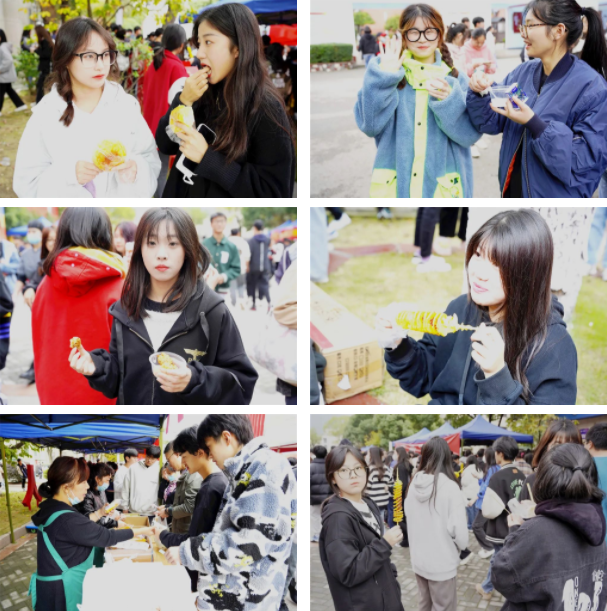 美丽的正德楼前,各色美食齐堂、香气四溢,食堂师傅们大展身手,从现场制作的风味小吃、特色美食到精美的西式甜品,每个摊位前都排着长长的队伍,每一个角落都氤氲着烟火的温度,学生们迫不及待地来现场享受这一场饕餮盛宴。