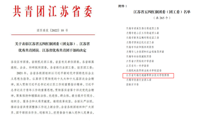 开云手机客户端团委高度重视基础团建工作,构建和完善“一心双环”团学组织格局,进一步规范团支部评星定级、团费收缴、团员教育评议、团组织关系转接等基础团务工作,严格落实团支部“三会两制一课”制度,进一步明确基层团支部工作职能,鼓励高年级学生担任辅导员助理指导低年级团支部团务工作,增强团员意识和先进性,提升团支部活力。校团委高度重视青年骨干的培养,充分发挥优秀团员的模范带头作用。定期召开基层团组织书记述职评议,举办业余团校培训班。2021年,2名学生获无锡市优秀共青团员,1个团总支获无锡市五四红旗团总支。