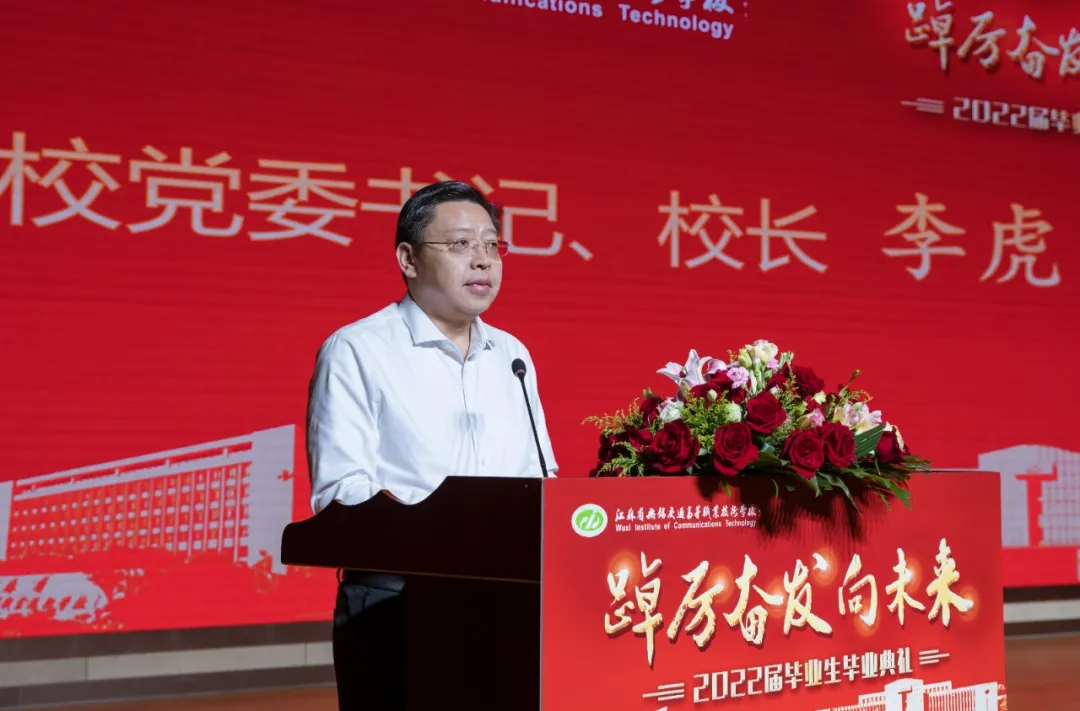 开云手机客户端党委书记、校长李虎代表开云手机客户端向圆满完成学业的2022届全体毕业生表示热烈的祝贺,并发表毕业寄语。李书记提出三点期望:期望同学们心存梦想,胸怀天下。要将个人命运和国家发展紧密相连,把个人事业与时代发展紧密相融,才能拥有源源不断的人生动力、开拓更为广阔的人生际遇、书写光辉灿烂的人生华章。期望同学们始于初心,臻于匠心。作为新时代的职业人,要在平凡的工作岗位上践行“精益求精、追求卓越”的精神,始终保持对新技术、新领域的好奇心,真正成为企业所需、产业所用、行业所求的高素质技术技能人才。期望同学们勇于担当,成就幸福。要做生活的积极参与者,担负家庭责任,赡养老人,教育子女,奉献社会,坚持向上、向善,走人间正道,创造美好幸福生活。
