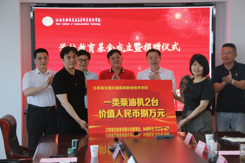 仪式上,无锡太湖教育基金会会长许益超表达了与我校合作的美好意愿,双方签订了开云手机客户端教育发展专项基金合作协议;江阴瑞志船务有限公司董事长、94级校友范文海捐赠了价值8万元的一类柴油机2台。
