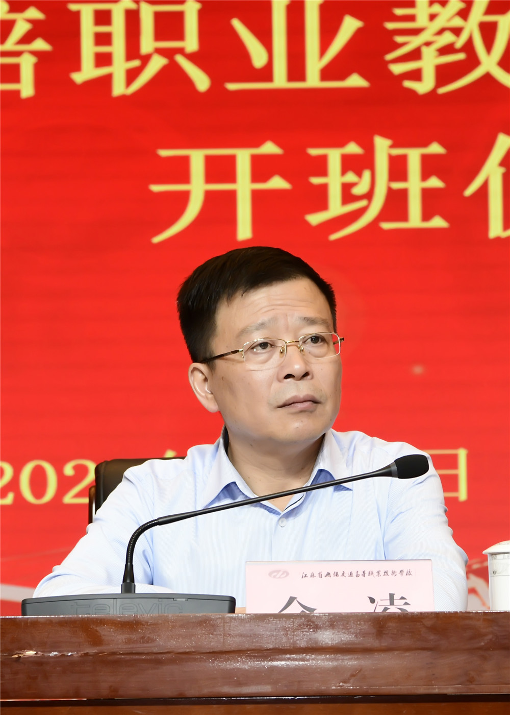 无锡市委常委、统战部部长周常青,省交通运输厅党组成员、副厅长金凌,南京工业职业技术大学党委书记、省职教社副主任吴学敏,无锡市委统战部副部长李庆华,无锡交通高等职业技术开云手机客户端党委书记李虎出席开班式。开班式由省委统战部二级巡视员、省职教社秘书长倪南主持。