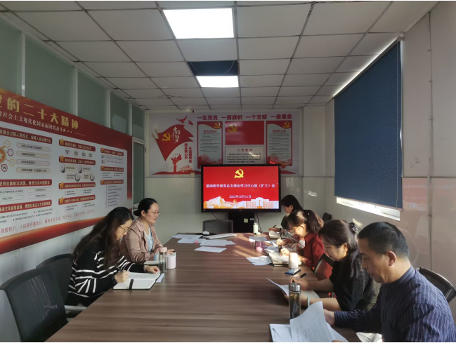 10月11日下午,基础教学部在部门会议室召开党总支理论学习中心组(扩大)会,会议由党总支副书记杨凤琴主持。