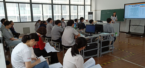 刘老师从机床运行视频引入,根据视频来分析运行步骤,将状态的区分,更好的绘制状态转移图进行分析和讲解,引导学生将任务分步实施;学生在完成项目课题过程中,完成知识点的考核。刘老师有效利用多媒体教学手段展开教学,教学思路清晰、教学模式新颖,给听课老师留下了深刻的印象,得到了听课同仁的一致好评。
