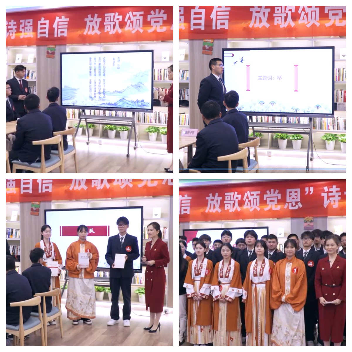 活动开始,由主持人带领全场选手朗诵了毛主席诗词《七律•长征》,一起领略了党史和诗词的无限魅力。本次活动尤其精彩的是在“飞花令里扬精神”环节,以“路”“桥”“国”为主题词进行PK,这种方式既能感悟专业文化底蕴、又能提升学生的专业学习热情、激发树立使命感。