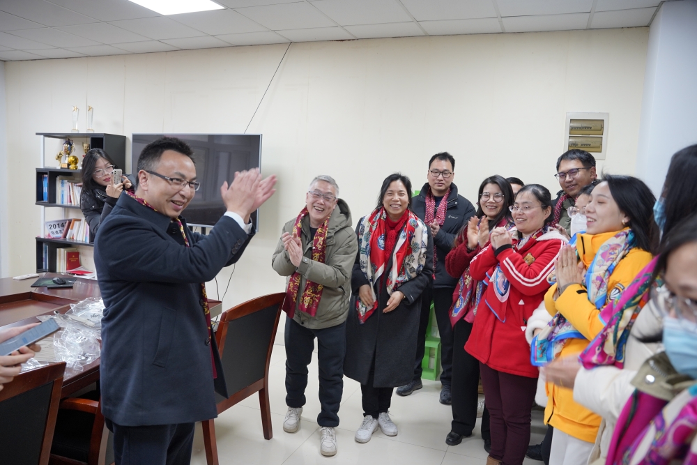 2月24日,在新学期开学之际,开云手机客户端校长、党委书记李进,党委副书记、五级职员朱雨兰,副校长耿兴华、范次猛等一行来学院慰问,向全院节后返岗的教职工致以新春的祝福和新学期的问候,为教职工送上新年“小礼品”,为大家提士气、鼓干劲。