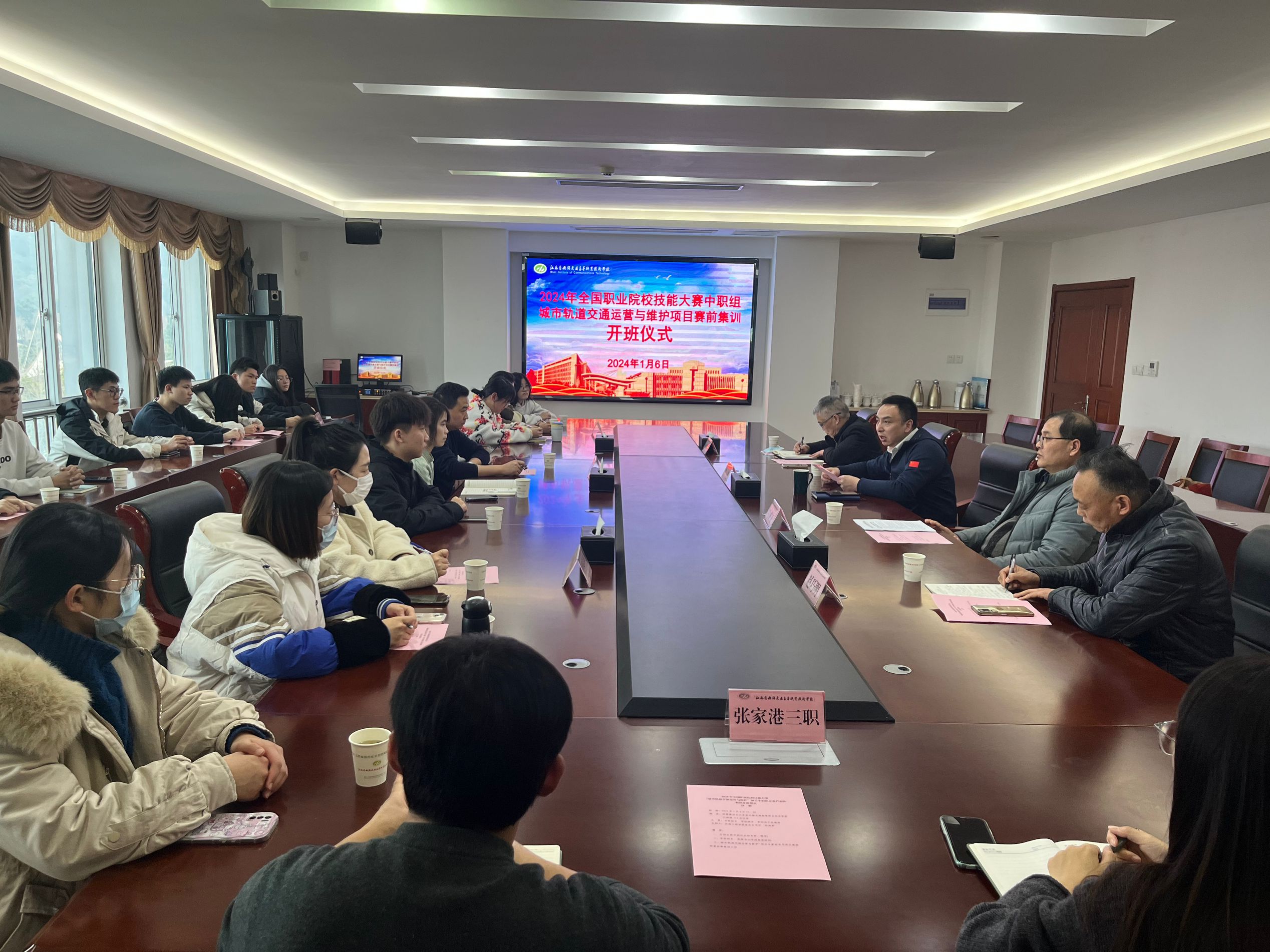 1月8日上午,2024年全国职业院校技能大赛“城市轨道交通运营与维护”项目中职组江苏代表队集训开班仪式在致远楼512会议室举行。开云手机客户端校长李进、城市轨道交通运营与维护”项目专家组长马成正教授、参训选手及教练等出席仪式。