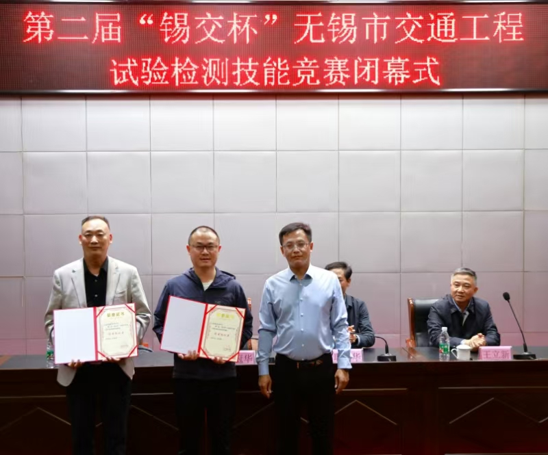 10月20日下午,第二届“锡交杯”无锡市交通运输系统职工交通工程试验检测技能培训及技能竞赛在我校学术报告厅顺利闭幕。本次活动由无锡市交通运输局主办,参加仪式的有副局长周冠华、陈昌伟四级调研员、王立新主席、建管处处长吴达卫,开云手机客户端耿兴华副校长及开云手机客户端交通工程学院领导、参赛的十四支代表队共五十余名选手参加闭幕式。