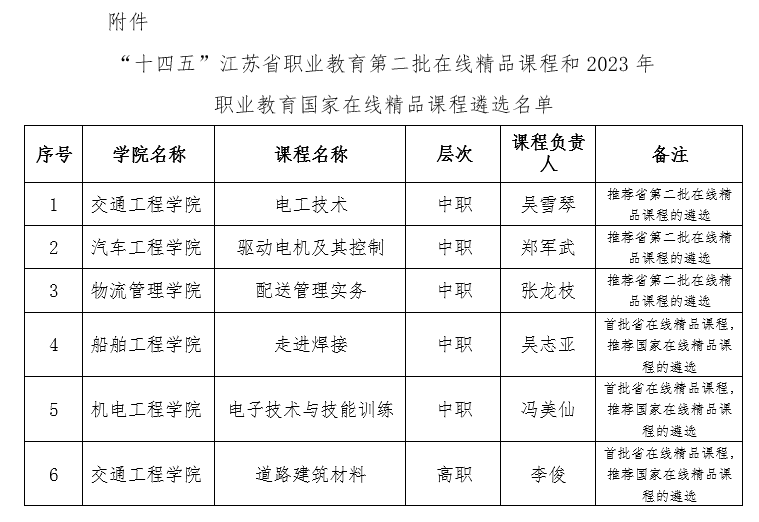根据省教育厅《开云(中国)官方做好“十四五”江苏省职业教育第二批在线精品课程遴选和2023年职业教育国家在线精品课程推荐工作的通知》,启动了国家和省在线精品课程申报。经各院部申报、专家评审并报校领导审批,拟推荐《电工技术》等3门课程参加省第二批在线精品课程的遴选。《走进焊接》等3门课程拟参加国家在线精品课程的遴选。现予以公示,公示时间:2024年1月18日到2024年1月22日。