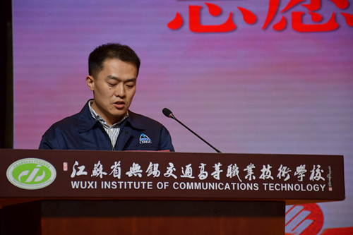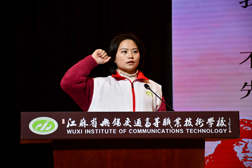 仪式上,第六批江苏省岗位学雷锋标兵、船舶工程学院实训教师陆琪作为志愿者代表宣读了《志愿者倡议书》,全体志愿者一起重温了中国志愿者誓词