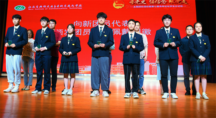 活动在庄严的国歌声中拉开帷幕入团仪式上,各学院团总支书记为新团员代表颁发团员证,佩戴团徽,并组织老团员重温入团誓词,新团员进行入团宣誓,全体人员共同接受了一次思想的升华和心灵的洗礼。新团员惠婷渊同学、老团员王秋怡同学作为代表发言,她们均表示要在学习生活中不断炼就自己,努力使自己成为综合素质全面发展、具有优秀品质、良好素养的新时代团员青年。8分钟微团课《中共一大的召开》记录了中国共产党梦想的启航,展示了中国共产党人伟大的爱国主义精神,激励团员青年牢记历史,不忘初心,奋发向上。