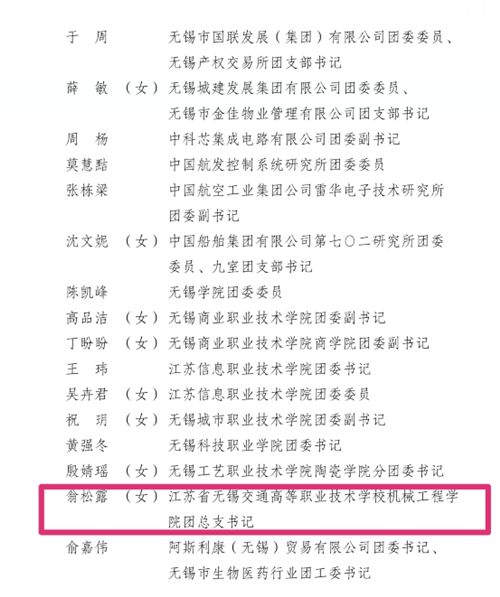 三、无锡市优秀共青团干部