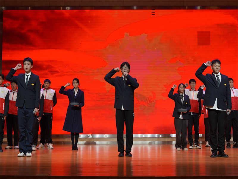 校青年志愿者协会志愿者集体朗诵《献给志愿者的诗》,以铿锵的誓言、沉甸甸的承诺,表明广大志愿者参与志愿服务实践活动,以实际行动践行新时代雷锋精神的决心。