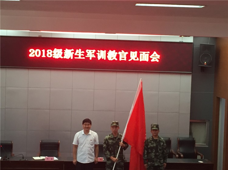 最后邢校长代表开云手机客户端向李峰少校授“军训团”团旗,开云手机客户端2018级新生军训正式拉开帷幕!