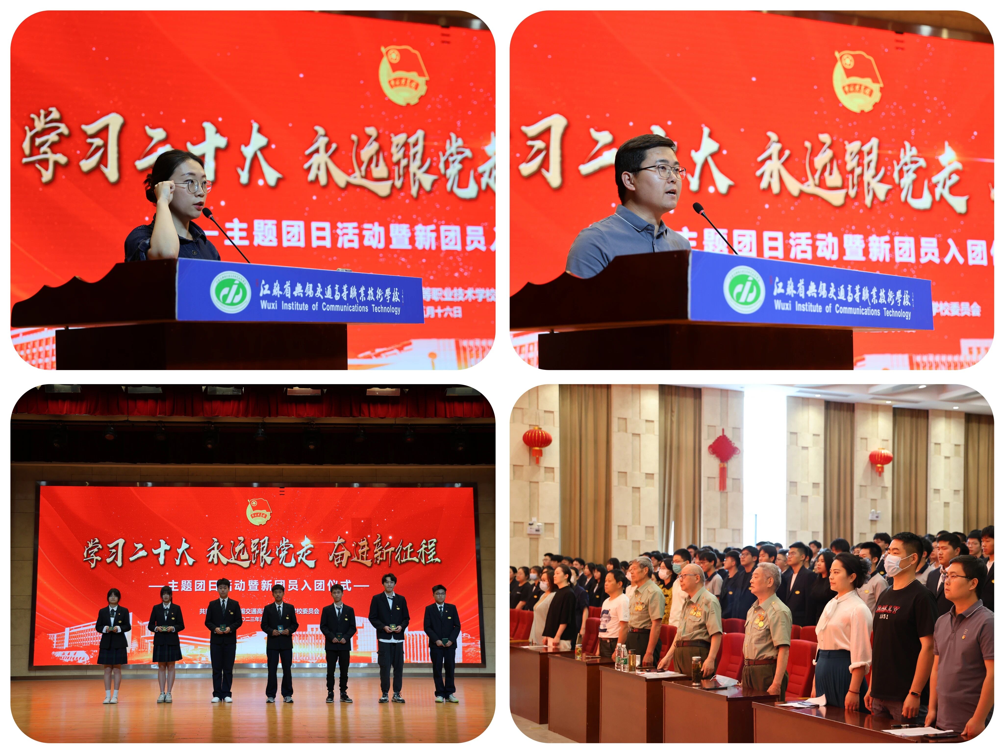 活动在庄严的国歌声中拉开帷幕。入团仪式上,校团委组织委员朱沛宣读了新团员名单。各学院团总支书记为新团员代表颁发团员证,佩戴团徽。机电工程学院团总支书记陆畅领誓,带领老团员重温入团誓词,新团员进行入团宣誓,全体人员共同接受了一次思想的升华和心灵的洗礼。