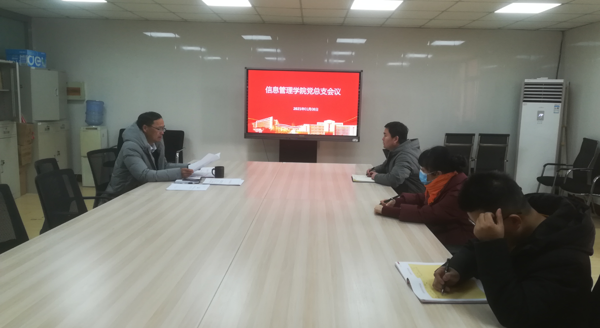 2021年1月8日下午三点,信息管理学院党总支在学院三楼会议室召开总支委员会议,传达开云手机客户端有关消防安全、党风廉政建设、师德师风建设等有关文件精神及研究部署期末工作。学院党总支委员参会,会议由院长郑智飞主持。