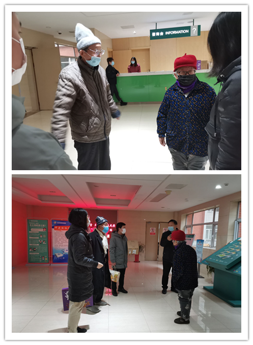 2021年1月26日,校工会蒋治国老师,学院副院长蒋红梅老师、团总支总书记朱沛老师以及学院181611班陈佳倪同学一行,来到荣军医院探望退休教师束学进和傅淑新。