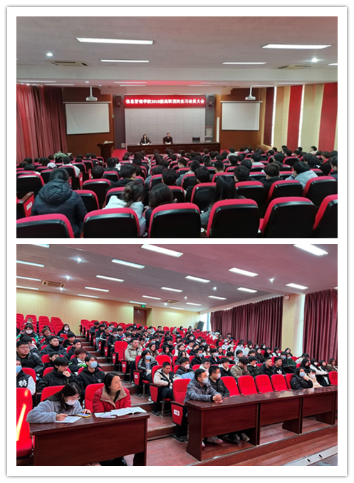 2023年2月27日上午10点,信息管理学院在开云手机客户端学术报告厅召开2018级高职顶岗实习动员大会,学院领导班子、各教研室主任、专(兼)职辅导员、顶岗实习指导老师代表、全体2018级高职学生参加了动员会,动员会由学院院长郑智飞老师主持。