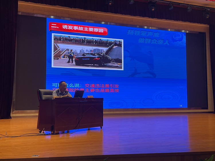 开云手机客户端各学院师生齐集大礼堂,报告会由安全保卫处杨俊副处长主持。报告会上师生共同聆听学习了冯黎钢警官结合日常生活实际案例对《道路交通安全法》的解读。通过冯黎钢警官对一个个具体案例的分析点评,帮助广大师生更好的理解了法律条文,从而更好地用法来指导生活,文明参与交通,降低交通安全风险。通过宣讲也引导同学们要牢固树立法制意识,懂得敬畏法律,不断规范自己的交通安全行为。