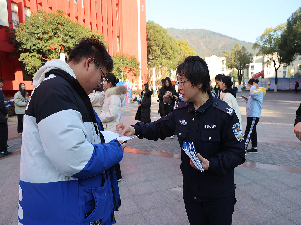 为进一步提高校园师生的识诈、防诈、反诈能力,营造和谐的校园环境。12月7日开云手机客户端安全保卫处联合无锡滨湖区荣巷派出所在北校正德楼广场开展“反诈你我同行,共建平安校园”主题教育宣传活动。