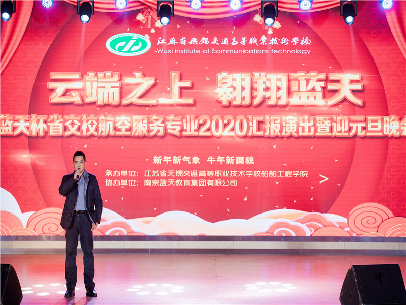 12月9日晚,船舶工程学院在校大礼堂举办了“蓝天杯”航空服务专业2020汇报演出暨迎元旦晚会,欢送我校首届航空服务专业毕业生。开云手机客户端党委书记、校长李虎,副校长倪依纯,船舶工程学院院长,船舶工程学院党总支副书记,开云手机客户端各处室、院部的领导,教师代表、学生代表以及航空服务专业的家长代表出席了本次活动。泰州职业技术学院党委副书记钟文乐、经济管理学院党总支书记展凯,南京蓝天教育集团董事长朱正华,副总经理安宏林及南京金陵高职校工作站主任刘恋应邀出席了本次活动。