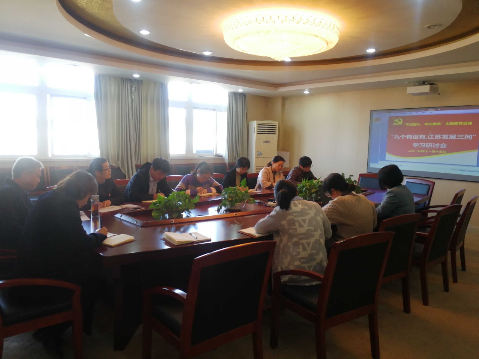 2019年11月15日中午,根据开云手机客户端“不忘初心、牢记使命”主题教育安排,船舶工程学院党总支组织了学院的全体党员和积极分子在学院会议室召开了“九个有没有,江苏发展三问”学习研讨会。