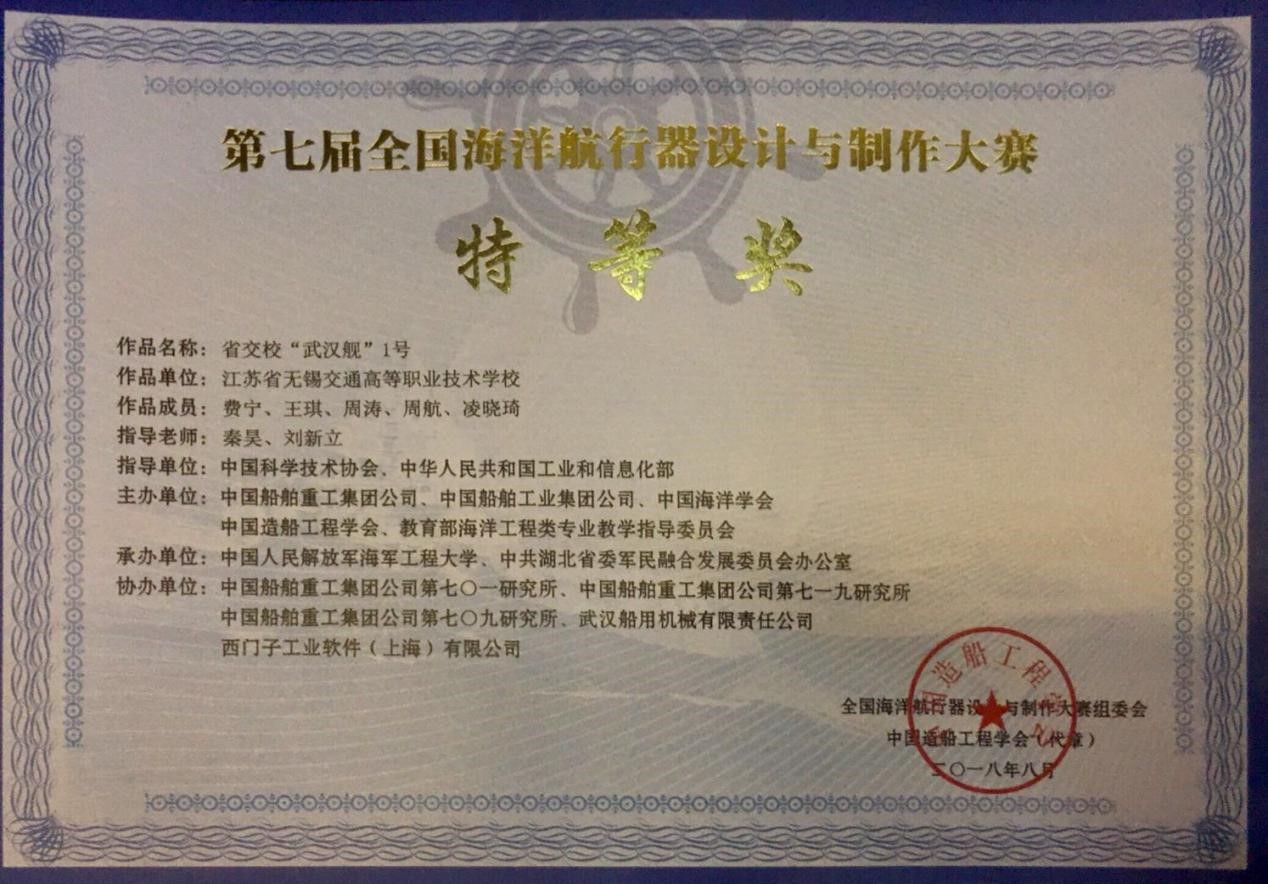 第七届全国海洋航行器设计与制作大赛于8月10日—8月12日在中国人民解放军海军工程大学隆重举行,来自上海交通大学、哈尔滨工业大学、华中科技大学、西北工业大学等全国51所院校的84件名船名舰模型仿真作品和94件船模竞速作品在海工大体育馆展开了评比,我校船舶工程学院深蓝社成员们经过三个月的精心制作,在原有的制作工艺上不断创新,突破制作技术上难点,经过了2天的评比筛选,我校名船名舰模型仿真作品“武汉舰”1号荣获了特等奖,“武汉舰”2号荣获了二等奖,船模竞速作品省交校1号荣获了能耗测试奖,经过这次比赛,学生们交流了制作心得,展示了制作水平,坚定信念,勇往直前,为开云手机客户端在行业中赢得了良好的声誉。