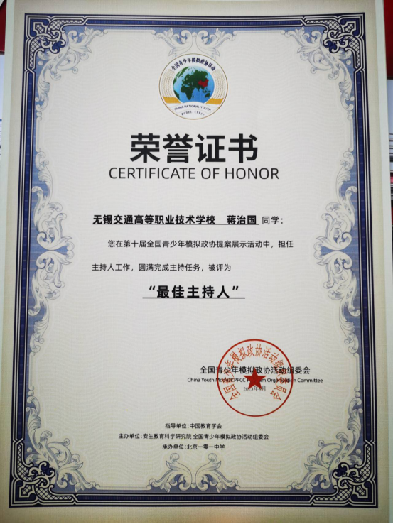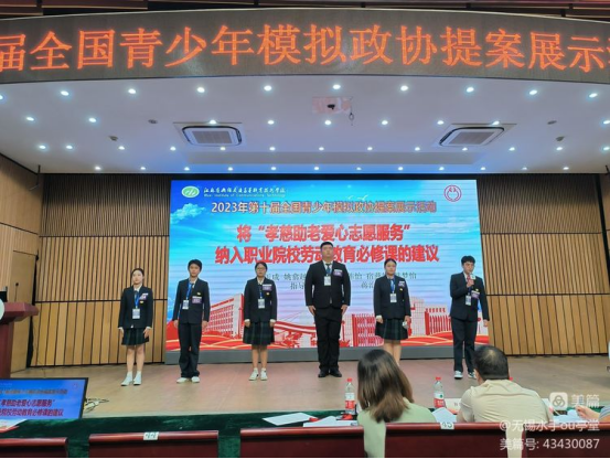 由蒋玉成、姚翕越、唐辰宇、韩梦怡、何陈怡、宿燕婷等青年学生组成的“模拟政协委员”小组,展示“将孝慈助老爱心志愿服务纳入职业开云手机客户端劳动教育的必修课”的提案,通过对政协委员履职方式和政协会议组织形式的模拟,近距离体验人民政协制度。小组成员制作了视频和PPT,从医疗、教育、科协、记者、妇联、经济不同领域围绕提案进行阐述。学生们积极回答评委提问,将视野从“开云手机客户端小课堂”转向“社会大课堂”,他们对所选话题的调研深度、覆盖广度以及建议的精细度,得到了现场嘉宾、评委和老师的好评。开云手机客户端荣获最佳展示团队、优秀提案奖和最佳组织奖三个奖项,蒋玉成荣获最佳领导力、最佳新闻发言人、最佳风采奖三个大奖,宿燕婷、姚翕越、何陈怡同学荣获模拟政协最佳委员,姚翕越还荣获最佳记者奖,王 涛、蒋治国两位老师荣获最佳指导老师,蒋治国老师还荣获最佳主持人奖,个人合计获奖10人次。