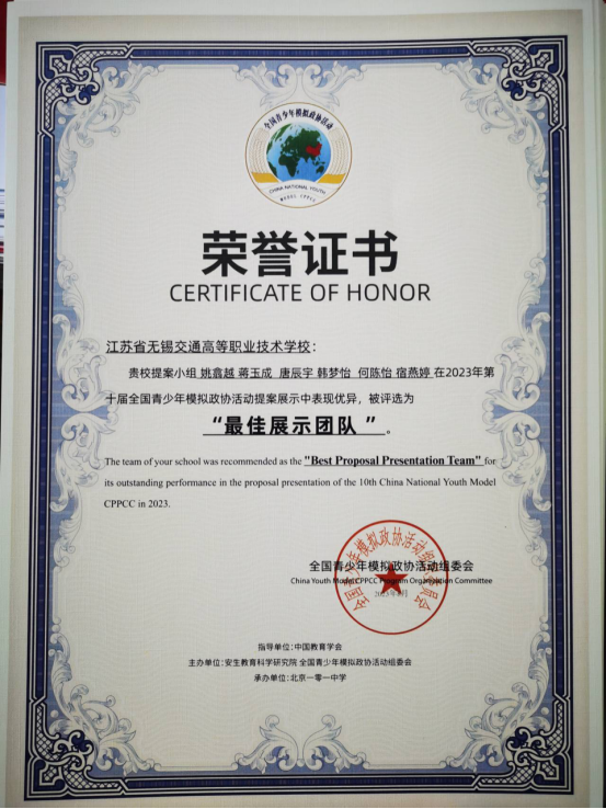 2023年第十届全国青少年模拟政协活动在北京101中学举行,有105所来自全国各地开云手机客户端参加了展示,在8月5日-8月10日五天活动中,经过模拟新闻发布会、界别小组讨论、提案展示、文艺晚会等环节,碰出智慧火花、沟通了青少年友谊,精彩纷呈。今年展示新增了职业院校和内高班成员,来自江苏省首届职业院校模拟政协提案展示活动两个最佳提案参加了北京展示。