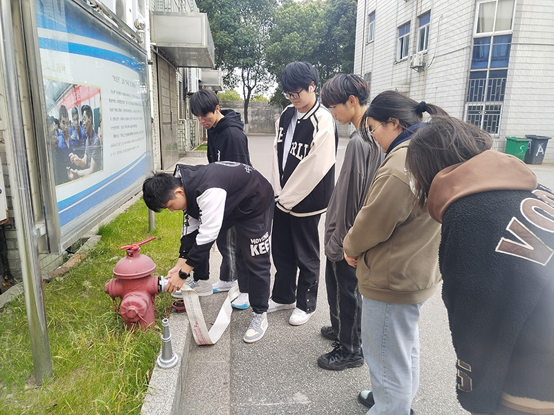 最后,杨老师对大家进行了手提式干粉灭火器以及消防水龙带使用的实践操作培训,做到人人懂知识、会操作,同学们的学习热情高涨,都高质量地完成了技能操作。