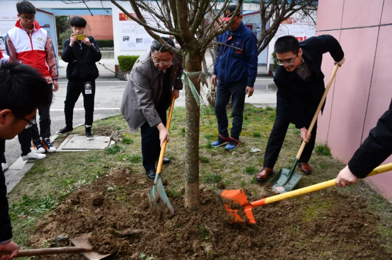 现场党员志愿者和学生志愿者分散植树,大家热情高涨、劲头十足,挥锹培土,扶植树苗、浇水呵护,为校园增添绿意,为校园播种希望。