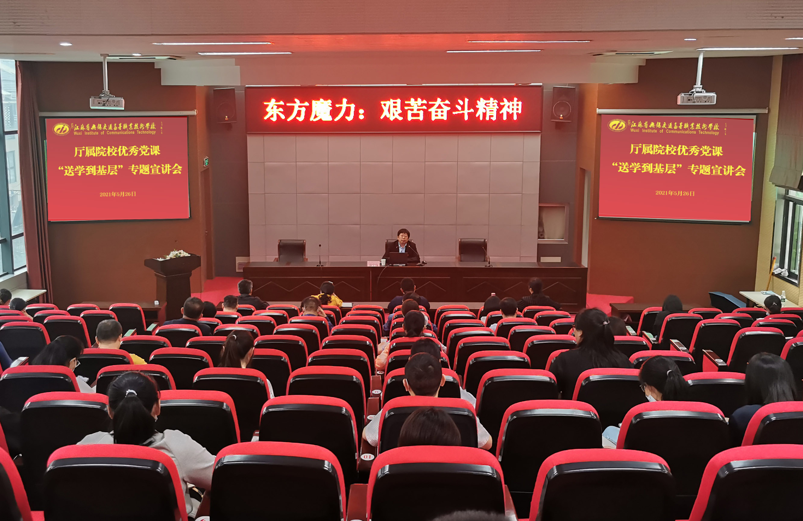 扎实开展党史学习教育,厅党组发挥厅属院校思政教师的作用,统筹安排了厅属院校优秀党课“送学到基层”活动,强化交通基层党组织建设,526日下午,江苏省交通运输厅厅属院校思政教师优秀党课“送学到基层”《东方魔力:艰苦奋斗精神》专题宣讲会在学术报告厅举行,近70名党员教师和学生党员参加学习。