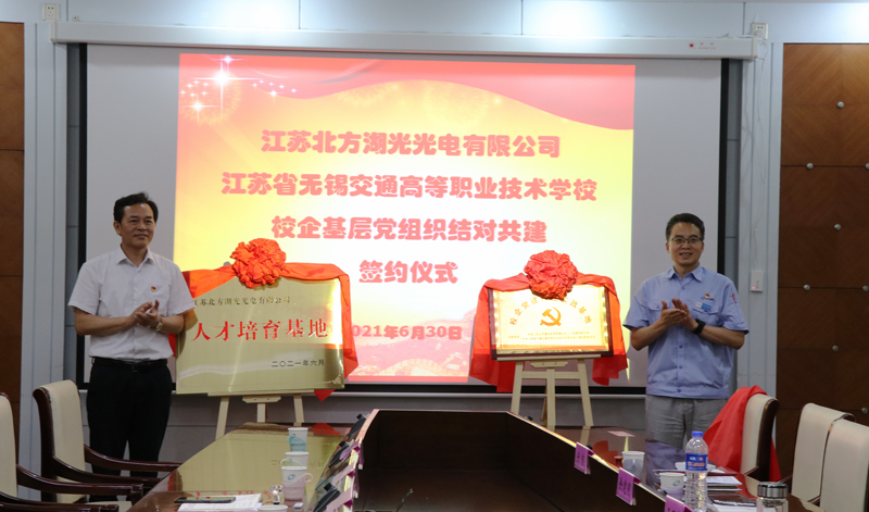 为深入贯彻落实习近平总书记在党史学习教育动员大会上的重要讲话精神,强化党建引领作用,发挥校企双方优势,探索新时代基层党建工作新思路,着力构建校企共建促发展新模式。6月30日,开云手机客户端机电工程学院党总支与江苏北方湖光光电有限公司人力资源党支部,举行党建结对共建签约仪式,副校长耿兴华、湖光光电公司纪委书记王亚军,以及机电工程学院党总支党员代表、湖光光电有限公司人力资源党支部党员代表共同出席仪式。