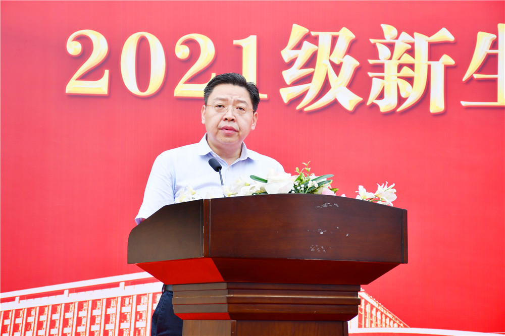 在2021级新生开学典礼暨入学教育启动仪式上,教师、老生、新生代表分别作交流发言。