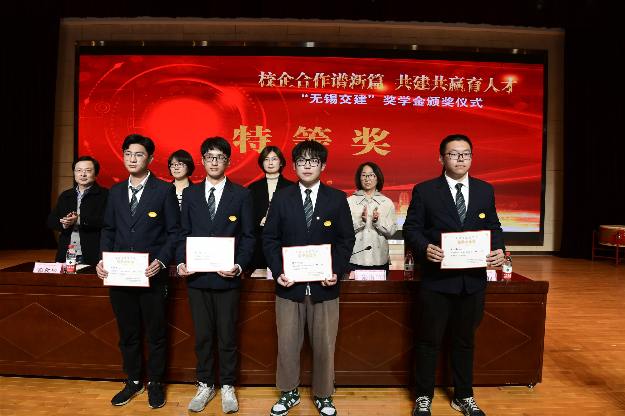 会上,无锡交建集团宣读了2021年度无锡交建奖学金表彰决定。171421班朱金丰等4名学生获得一等奖,191432班吕倪昊等3名学生获得二等奖,191421班程一鑫等4名学生获得三等奖学金,201411班张昊等28名学生获得四等奖学金。“无锡交建奖学金”是无锡市交通建设工程集团有限公司出资在我校交通工程学院设立的奖学金,每年奖励优秀学生2万元。