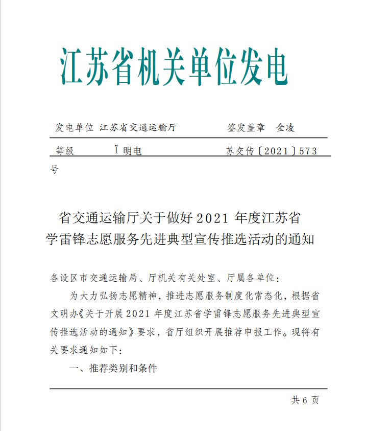 附件:《省交通运输厅开云(中国)官方做好2021年度江苏省学雷锋志愿服务先进典型宣传推选活动的通知