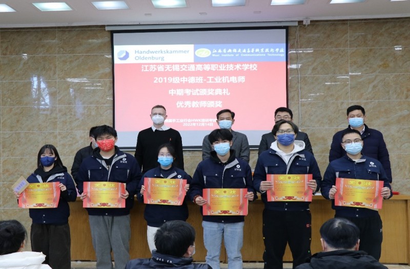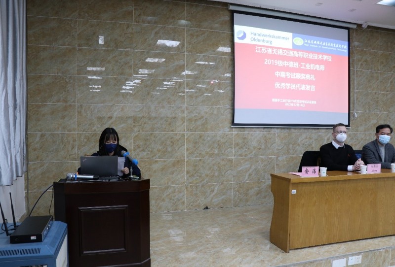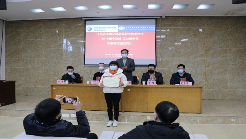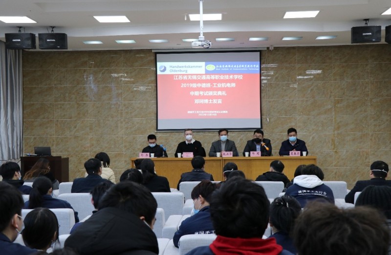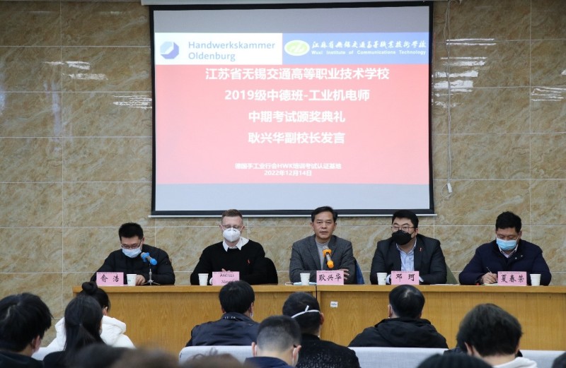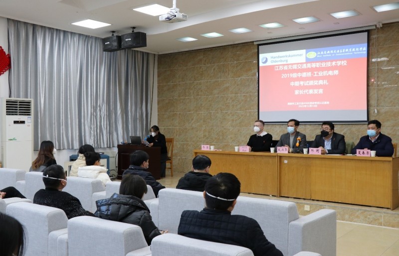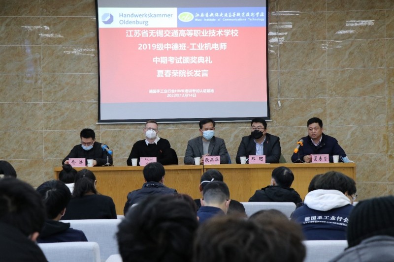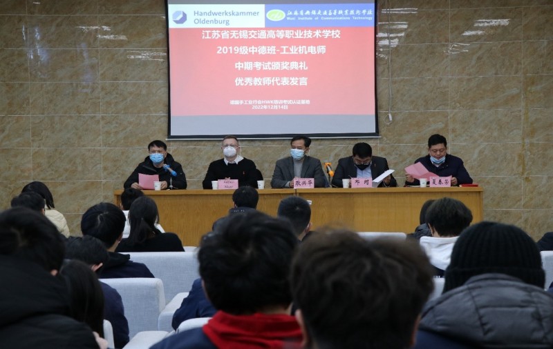 为进一步开展好德国手工业行会工业机电师培养项目,不断总结经验和成果,激励同学们将更多的精力投入到项目学习中,机电工程学院与德国手工业行会中国项目办于12月14日下午,在锡澄校区举行了2019级工业机电师中期考试颁奖典礼。开云手机客户端党委委员、副校长耿兴华,德国手工业行会中国项目办总负责人邓珂博士、机电工程学院院长夏春荣、德国手工业行会教官Andreas Meyer、学院优秀教师、家长代表、全体2019级中德班学生等参加了本次颁奖典礼,会议由机电工程学院副院长俞浩主持。