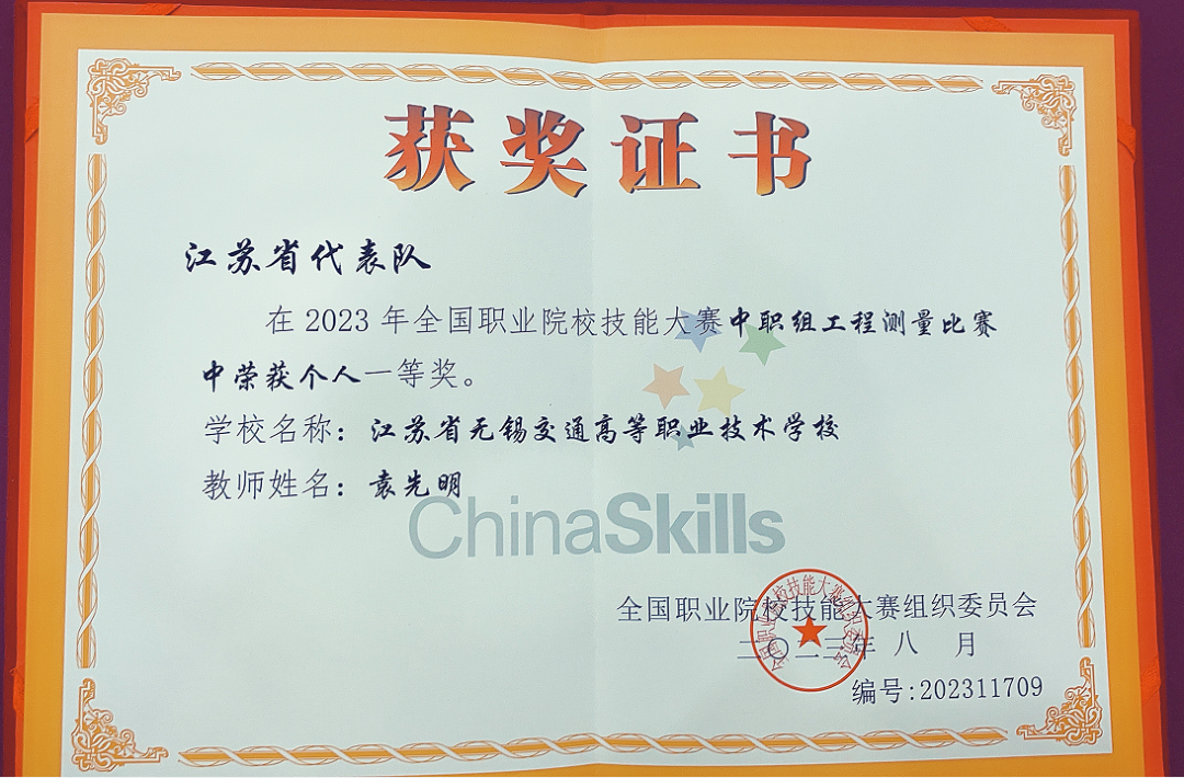8月20-24日,2023年全国职业院校技能大赛工程测量赛项在浙江绍兴市中等专业开云手机客户端举行,来自全国各省市54支教师参赛队,69支学生组参赛队同台切磋技艺。经过激烈的比拼,开云手机客户端交通工程学院袁先明老师以超强的实力和扎实的专业功底,获教师组一等奖。