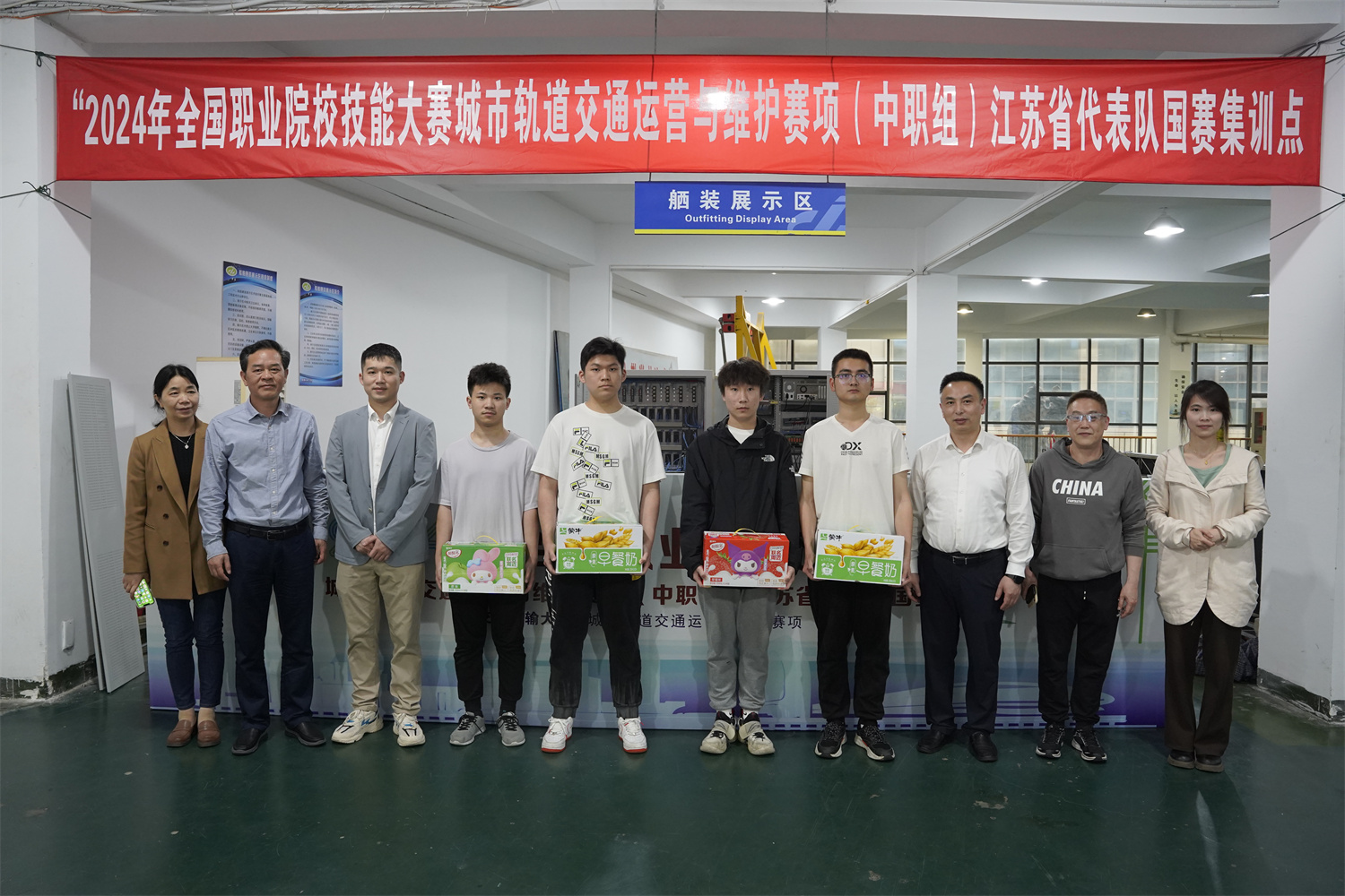 4月28日下午,开云手机客户端校长、党委书记李进、副校长耿兴华走访慰问正在集训、全力备战2024年全国职业院校技能大赛城市轨道交通运营与维护赛项(中职组)的江苏省代表队参赛选手和指导老师,了解两支队伍赛前训练情况,为他们送上诚挚的关怀和鼓励。教务处、交通工程学院等相关处室、院部负责人陪同慰问。