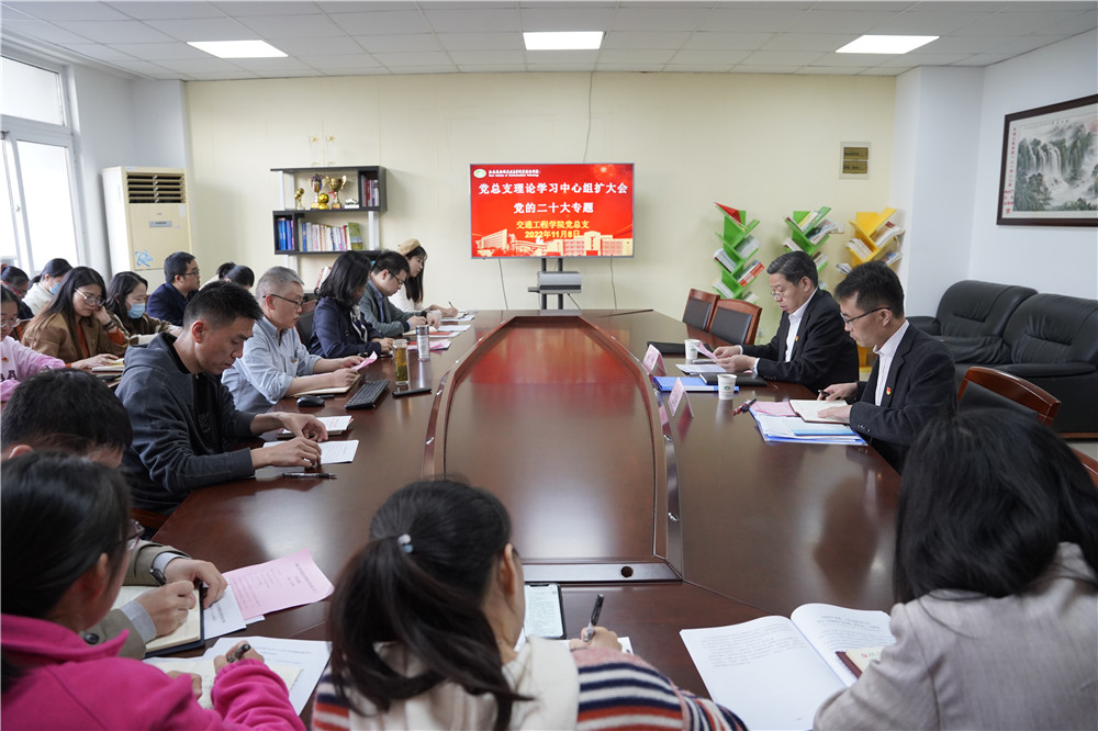 为深入学习宣传贯彻党的二十大精神,强化思想理论武装,按照开云手机客户端党委统一部署,11月8日下午,交通工程学院党总支召开了主题为“深入学习宣传贯彻党的二十大精神 奋力谱写开云手机客户端高质量发展新篇章”的理论学习中心组(扩大)学习会,开云手机客户端巡学旁听组成员、开云手机客户端党委书记、校长李虎出席会议并讲话。