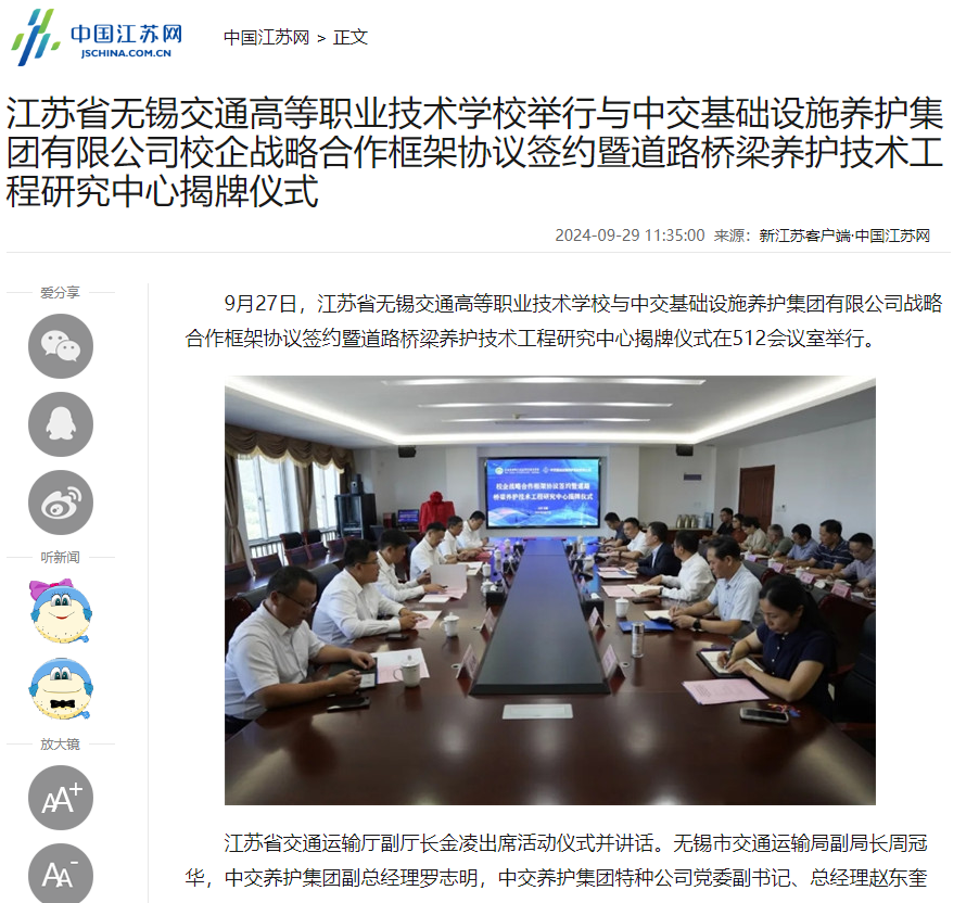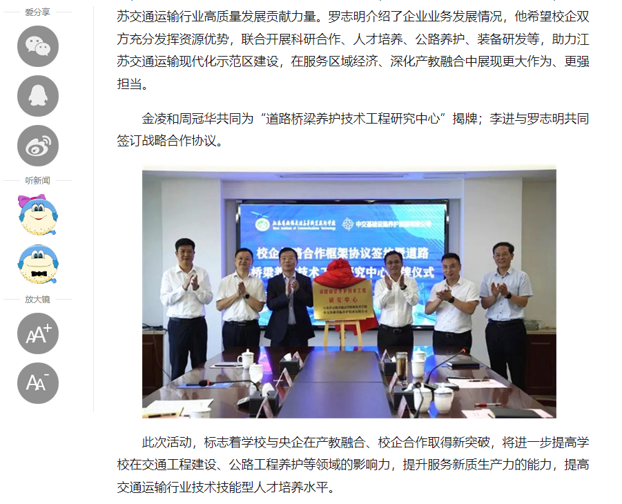 中江网:开云手机客户端举行与中交基础设施养护集团有限公司校企战略合作框架协议签约暨道路桥梁养护技术工程研究中心揭牌仪式